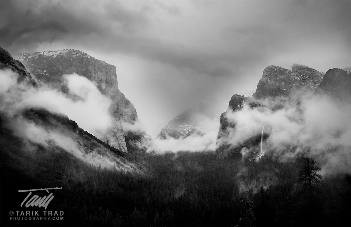 The mist and fog in the Valley below was creating a scene I could only dream of. There was a light snow beginning to fall – not enough to stop me but enough to put a plastic cover on the camera. As I fired shot after shot after shot, I was completely mesmerized by the view of the storm passing through Yosemite Valley. I looked over the guy taking pictures next to me. We both knew what we were witnessing. Before I could say anything, Jordan introduced himself and said, "I've been coming here with my camera four times a year for as long as I can remember and this is the first time I ever seen anything like this."